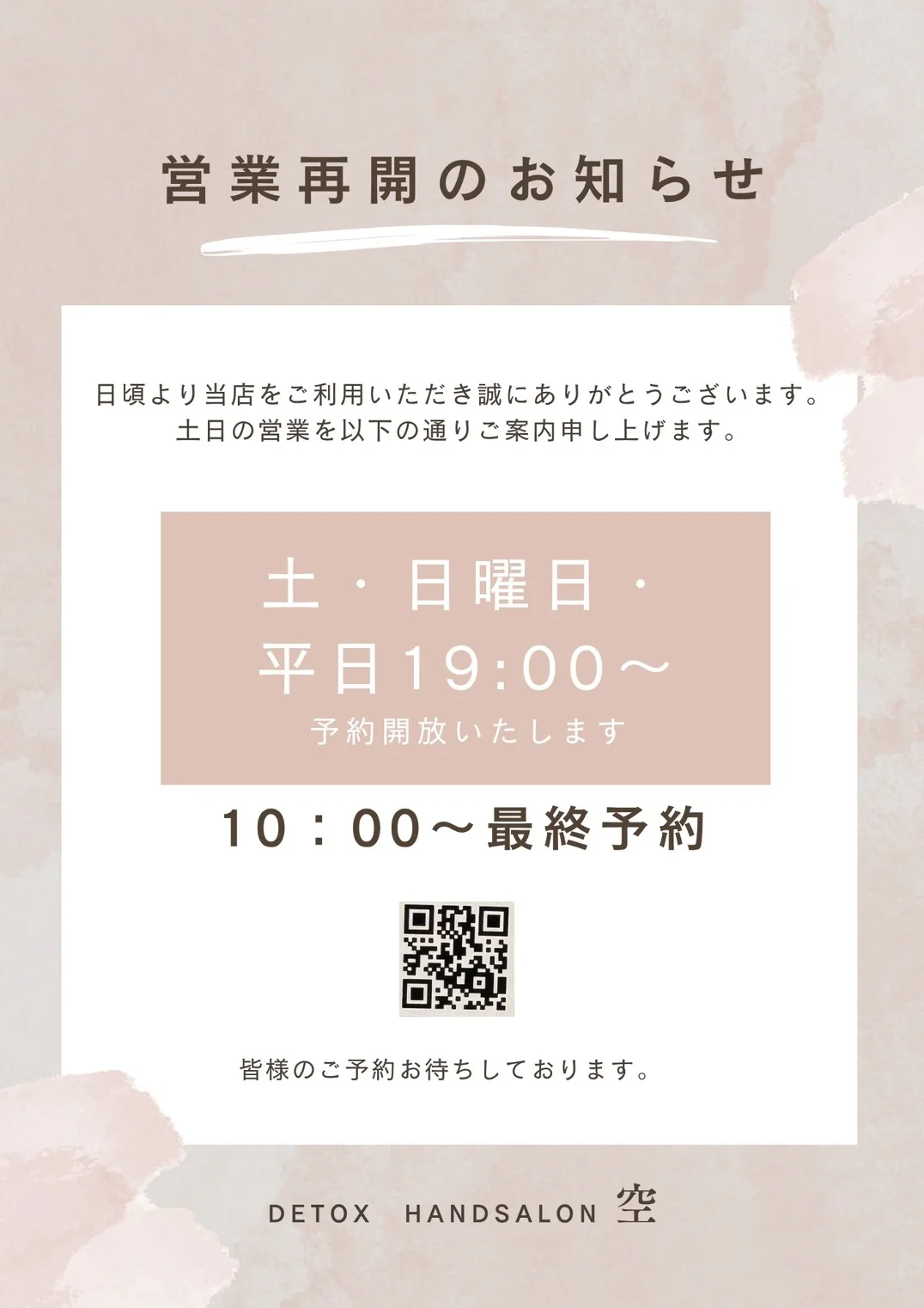 デトックスハンドサロン空からお知らせを受け取りますか?